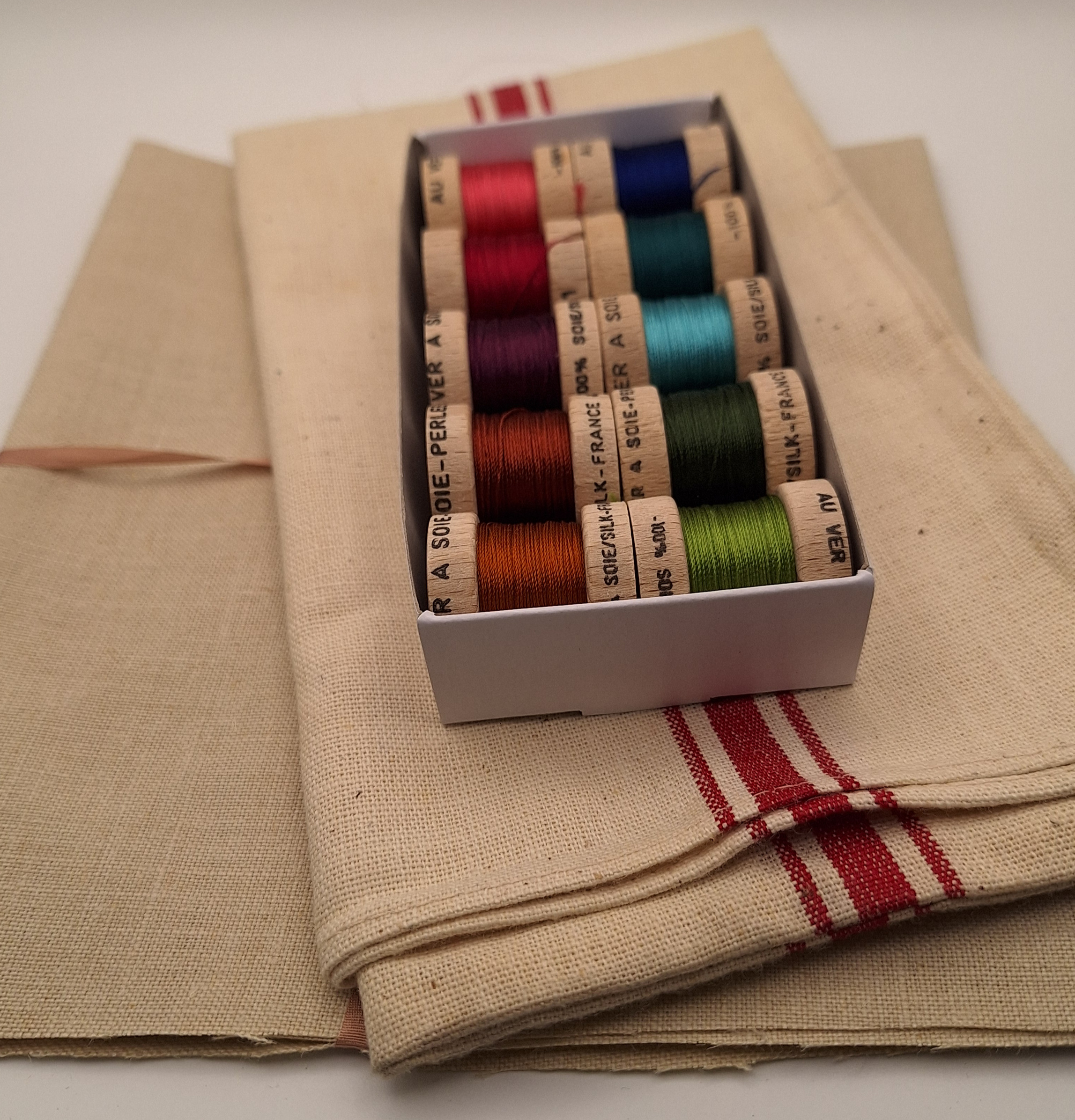 My stitching class at Tresillian has restarted for the year, and I am working on a Canvaswork project (the one on the right in the above photo) designed by Beautiful Stitches. I am using cream congress cloth and Cosmo embroidery floss.